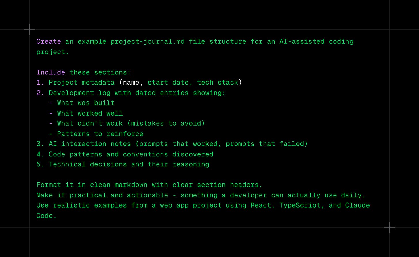 .. then reference these with @ to give AI persistent project knowledge that evolves with your codebase. After every AI edit, update the journal with patterns you don’t like and successful approaches to reinforce.