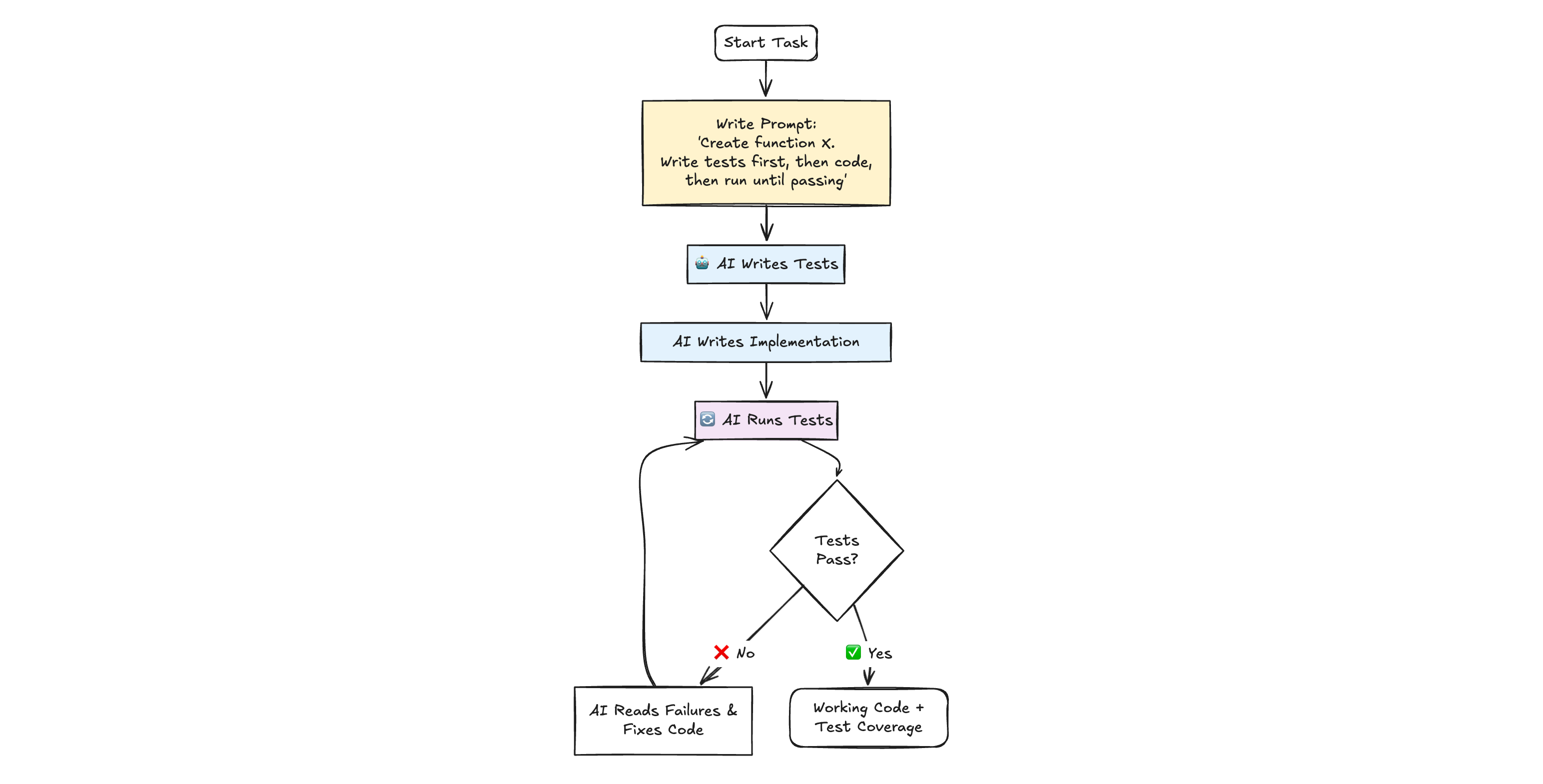 instead of generating code and then testing it, flip the sequence: have AI write tests first, then iterate on implementation until tests pass